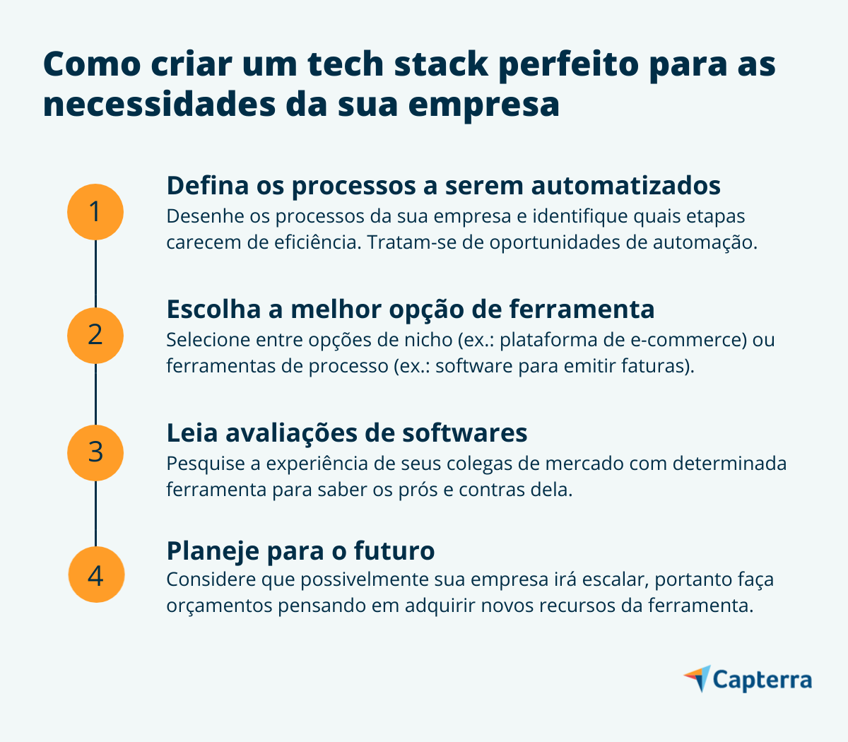 A seguir, conheça as etapas envolvidas na criação de um tech stack.